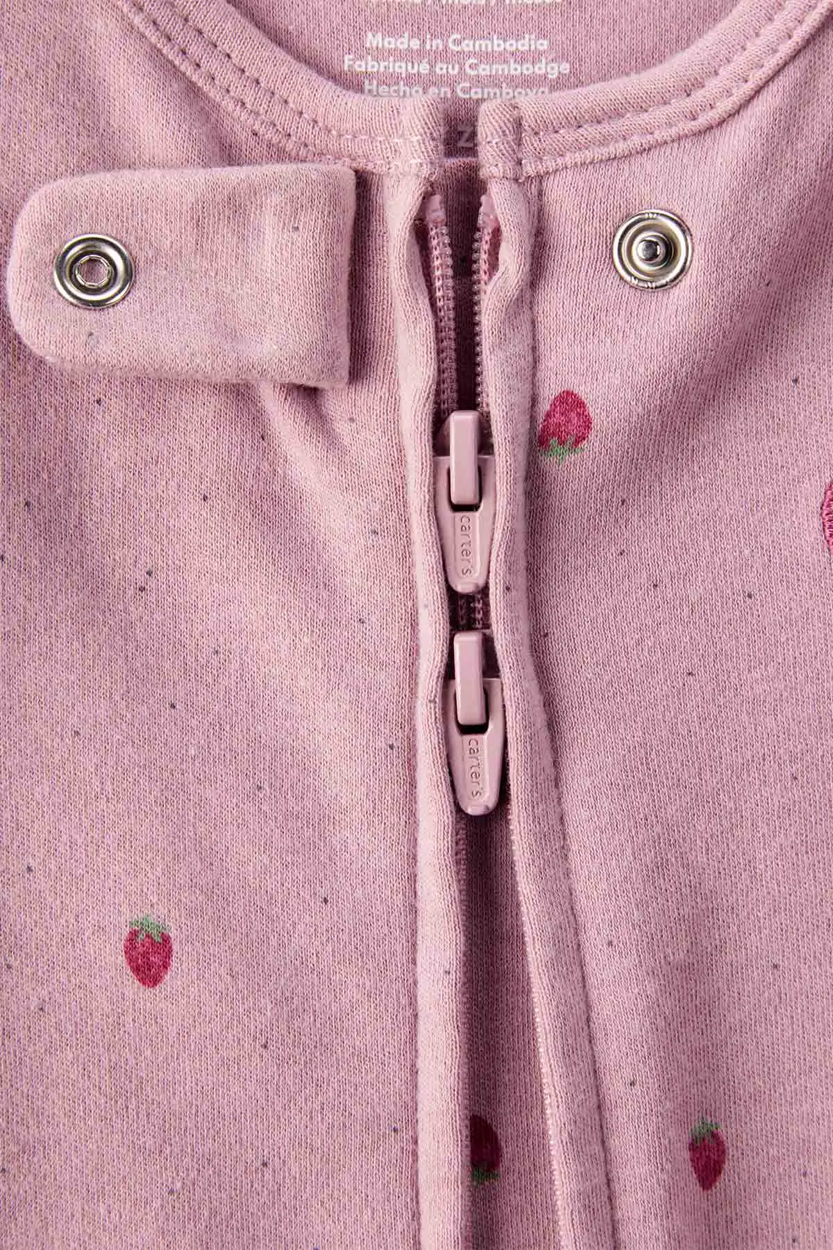 - Minik çileklerle bezeli ve konforlu bu tulum, bez değişimlerini kolaylaştırmak ve uykuları rahat kılmak için tasarlandı
