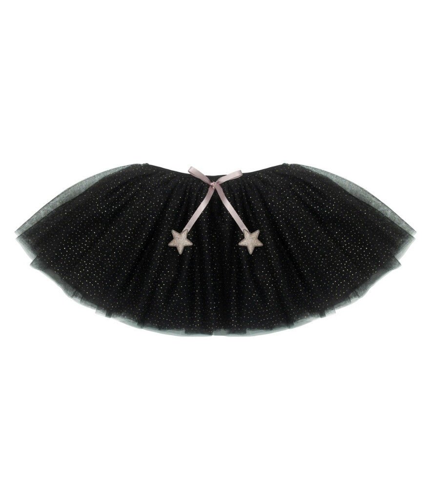 Bu büyüleyici siyah tütüye tüm mini cadılar bayılacak! Parıltılı metalik noktalara sahip tül katmanlarıyla, her gardırop için mükemmel bir tamamlayıcı.