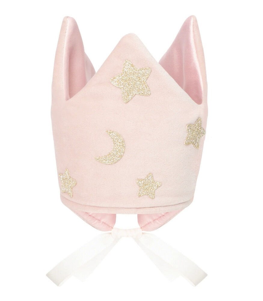 Parıldayan ay ve yıldızlarla bezeli bu kadife taçla oyun zamanlarına biraz sihir katın! İçi ve dışı lüks yumuşak kadifeden üretilen bu taç, kafa ölçüsüne göre ayarlanabilen beyaz grogren kurdeleye sahiptir.
