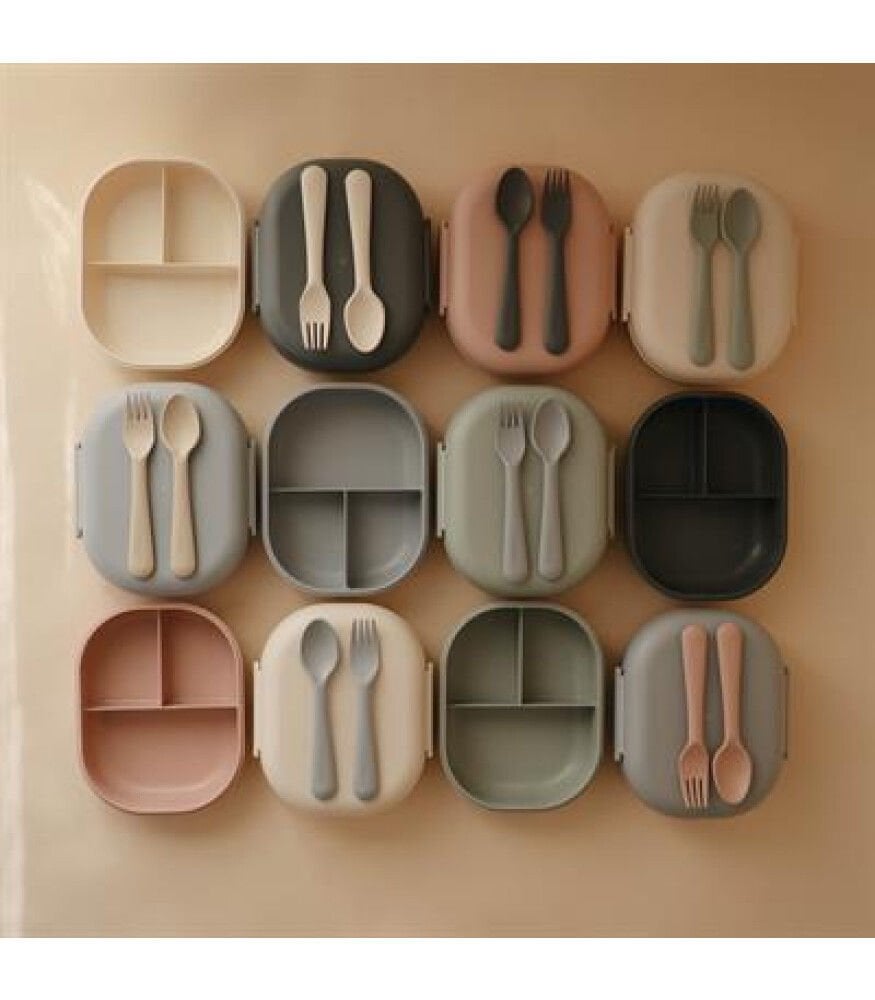 İçerisinde 1 adet çatal kaşık seti bulunan 1 adet beslenme kutusu