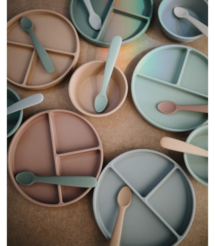 Şahane renkleriyle Mushie silikon vakumlu bölmeli tabaklara bayılacaksınız.