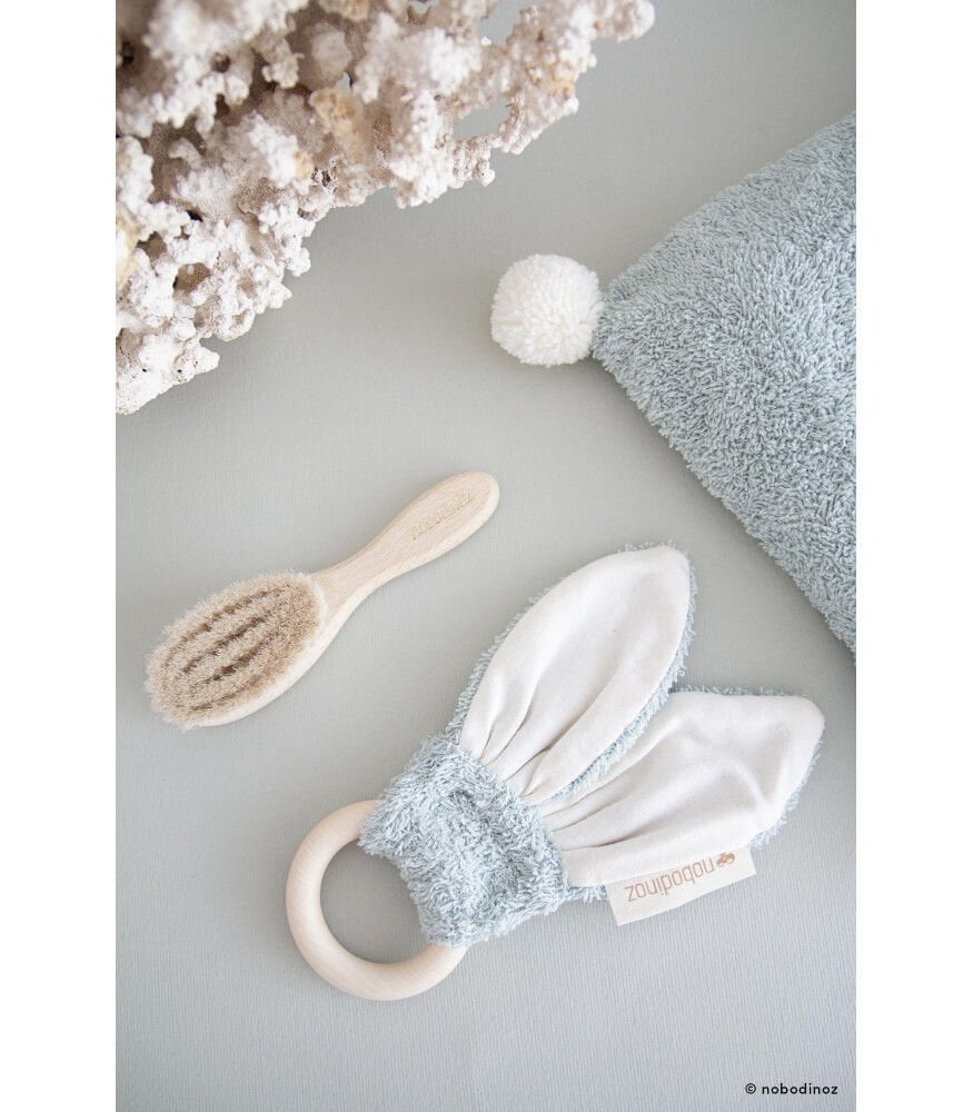 Ekstra yumuşak bebek fırçası sayesinde bebeğinizin hassas saçlarına bakım yapın. %100 doğal ekstra yumuşak keçi kılları sayesinde bebeğinize güzel bir kafa masajı yaşatın. Fırçaya mat ve zarif bir görünüm kazandıran, işlenmemiş masif kayın ağacından yapılmış rahat sap.