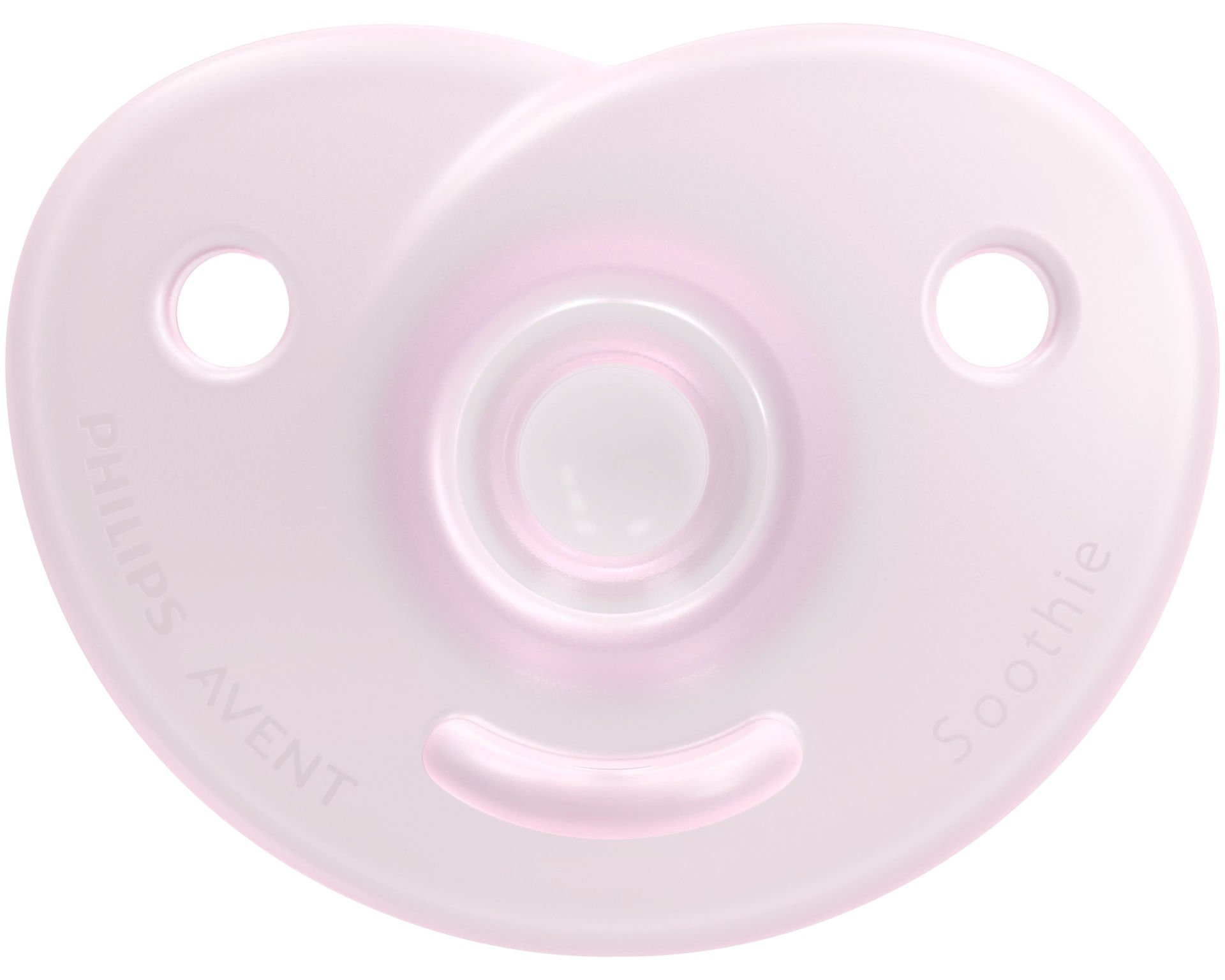 Philips Avent Soothie, bebeğinizin yüzünün doğal kıvrımlarına uygun şekilde tasarlanmıştır. Kıvrımlı, kalp şeklindeki koruma bebeğin minik burnuna çarpmaz. Tıbbi sınıf silikondan üretilen Soothie, Avrupa genelindeki hastanelerde dağıtılmaktadır*