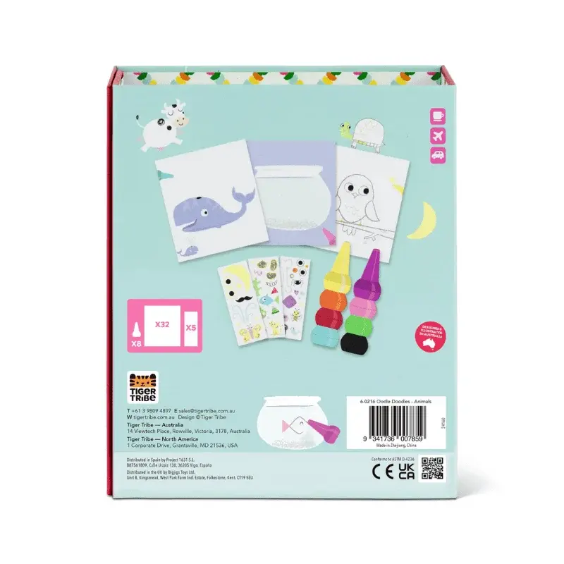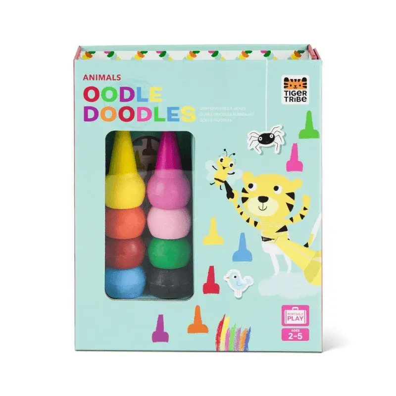 - Oodle Doodles setleri, kaplanların hareket halindeyken mutlu olmasını sağlamak için tasarlanmış çok sayıda renkli çizim, üst üste konabilen boya kalemleri ve çıkartmalarla doludur.
