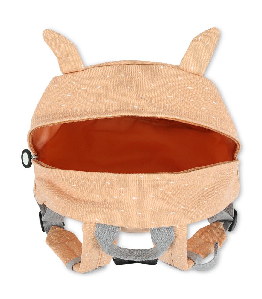 Bu sevimli sırt çantası ile çocuğunuz herhangi bir maceraya veya okula ilk seyahatine tamamen hazır! Sırt çantası, ayarlanabilir ve dolgulu omuz askılarına ve gittiğiniz her yerde kolayca tutup asmak için üstte kısa bir tutamağa sahiptir. Göğüs kemeri, omuz askılarının aşağı düşmesini önler. Sırt çantasının büyük bir bölmesi ve küçük bir ön cebi vardır, burada küçük bir aperatifi güzelce saklayabilirsiniz. Ana ve ön cepte, çocukların sırt çantasını kolayca açıp kapatmalarını sağlayan bir fermuar bulunur. Seyahat arkadaşınızı kaybetmemeniz için çantanın iç kısmında isim etiketi bulunmaktadır. Ayrıca sırt çantası su tutmaz ve çamaşır makinesinde hafif durulama ile yıkanabilir. Ancak, çantayı ne kadar çok yıkarsanız, o kadar az su itici olacağını unutmayın.